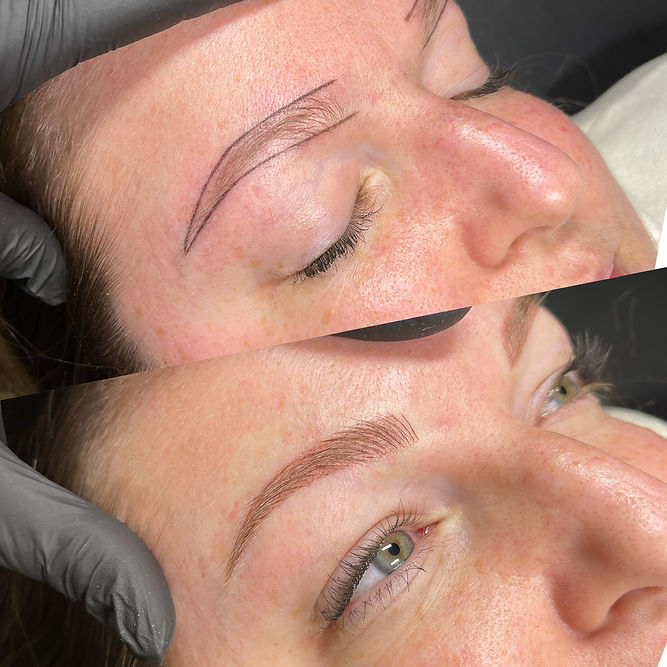 Ombré powder is a form of permanent Makeup tattoo. The style of brows begin soft and powdery, to bold and defined. Brows will heal 30% lighter and 10% thiner. Brow colors are custom to client's skin color and skin type and daily makeup routine. This service is great for ALL skin types. This style is more of a makeup look and will last up to 3 years.